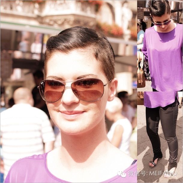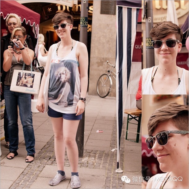 很多时候听朋友说,她们的另一半通常会软性建议她们不要剪头发,留长一点比较有女人味;甚至很多时候这些朋友也被洗脑了,认为有胸部的人就是应该要留长发。 所以,一头长发是我心中的梦,而那个梦随着我的年龄增加也越来越远。不过,我还是认为,不管是哪一种发型,都没有办法绝对适用在每一个人身上,因为每人的个性、气质和脸型都不同,怎么可能适合同一种的发型呢? 以下在街头上替大家捕捉了些俏丽的短发,可能是酷夏的缘故,每个人的发型和心情都神采飞扬;如果你也有长发情节,不妨让这篇文章帮你反洗脑一下,短发其实也很有魅力呀。 上两图:一头短发真的是无聊穿搭的救星。只要你有一颗敢秀的心、一位好的发型设计师、一罐超强塑性的发胶,尽管你只有一件白T-shirt、一件丹宁裤,一双帆船鞋,你终究都会是街头上最吸引人目光的一头野豹。我喜欢她略微将头发夹起的微妙变化,短发时,身上配件就变显得重要;当然,一副墨镜是最简单也最具有魅力的。 上两图:这位女孩子完全吸引我的注意力,因为在慕尼黑很难得看到这么匀称却又不是病态骨感的瘦女孩。她的柔美短发、饱满的额头、滑亮的肩头线条一切的比例呈现都是那么的刚好。我想,这位女孩很清楚她自己的优点在哪里。我尤其喜欢她的叶子型金色项炼,全身造型完全简单、干净却又好迷人,是我心目中很理想的穿搭法则之一。 上两图:再一头超短的浪漫卷发,这也是一种"如果你怕剪短发会太酷、没有女人味"的解决方法。配上俏皮的爱心眼镜、一只流苏包包,如果在穿着上带点浪漫的元素,我相信也可以打破"短发=没有女人味"的刻板印象。 上两图:这一个短发发型也让我很喜欢。欧美人是头发大多细嫩卷曲,不似我们东方人,粗黑笔直,所以当他们做造型时总是可以比较轻易拨出发型的流线。以我自己短发多年的经验,这位女孩的发型,只要一条好的造型胶,可以光凭手指头塑造出最少五种的发型呀。你说,短发是不是很有趣呢? 上三图:替大家找到一只可爱俏皮的小恐龙呀。她混搭的造型、配件还有发型是不是令人眼睛为之一亮呢?光是以她的直短发,依照发胶雕塑的方向不同,马上一款恐龙半屏山发型出现。配上黑色小发夹是神来一笔,和同色系的领带有相呼应的巧妙点存在。 上两图:最后一位有时尚设计师模样的日本妈妈。我真的得说,她实在是太耀眼了。完全独特的穿搭风格,拥有自己的品味,在单品配件上的选眼光。眼镜框和BOYFRIEND...