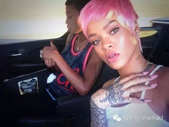 这一头粉红色精灵古怪,却又美得令人着迷。搭配上蕾哈娜古铜色的皮肤,怎一个完美了得!