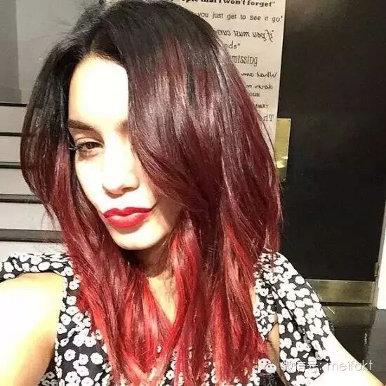 黑红渐变,加上发尾挑染的亮红给头发千变万化的层次感。
